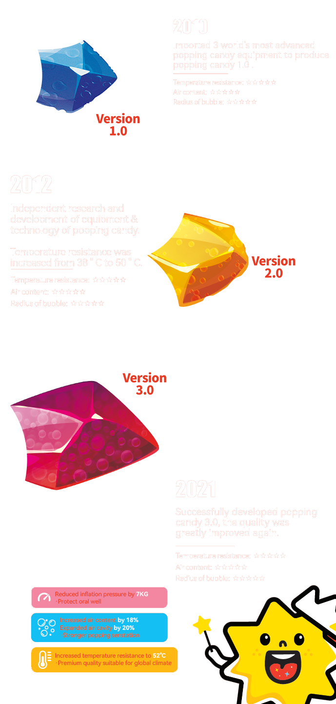 *Carbon dioxide in popping candy will protect the active of Vitamin C and probiotics